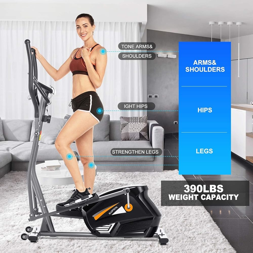 جهاز تمرين بيضاوي الشكل مع تطبيق، مدرب بيضاوي الشكل عالي التحمل للاستخدام المنزلي، مقاومة 10 مستويات، أقصى وزن للمستخدم 390 رطل، مثالي للتمرين الداخلي واللياقة البدنية