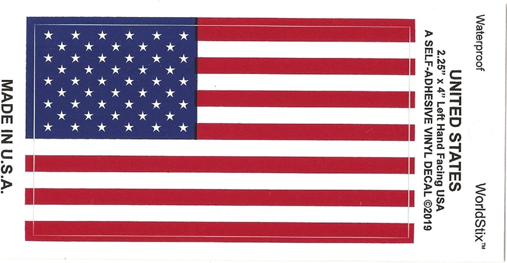 Each sticker flag decal measures 2.25" x 4". Made in USA