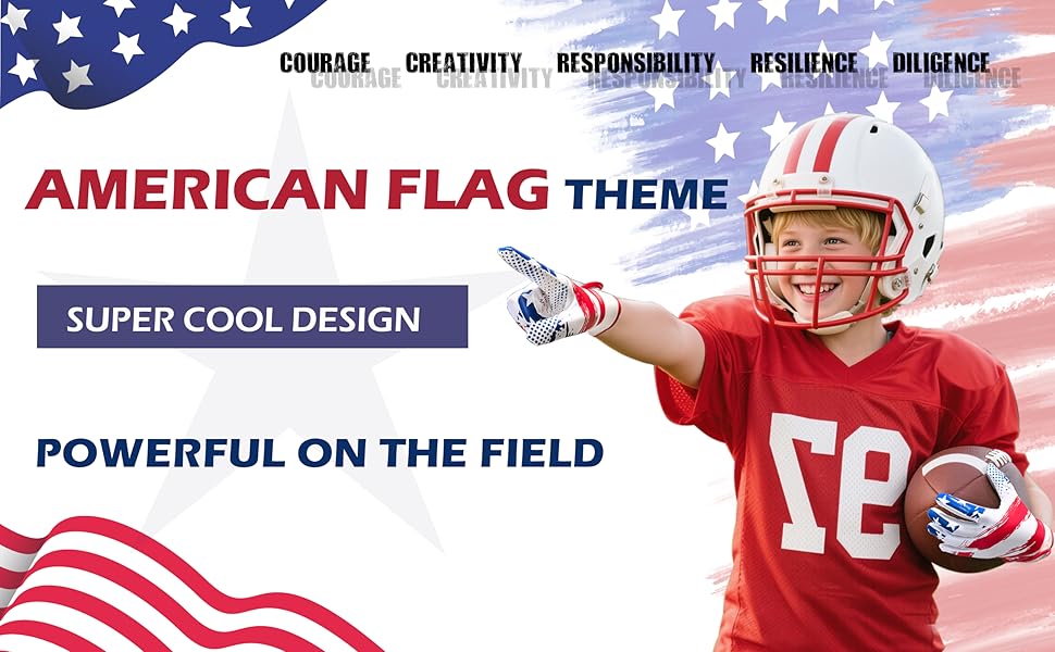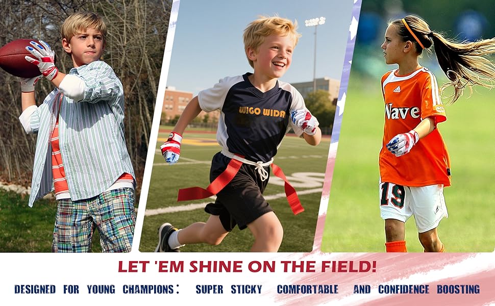 • رفيق رياضي للأطفال: مصممة للرياضيين الوطنيين الشباب، قفازات استقبال الأطفال هذه تناسب الرياضات التي تتطلب قبضة - الرجبي، كرة القدم العلم، حراسة مرمى كرة القدم. مثالية للتدريب أو الألعاب، فهي هدية مفضلة للأطفال النشيطين