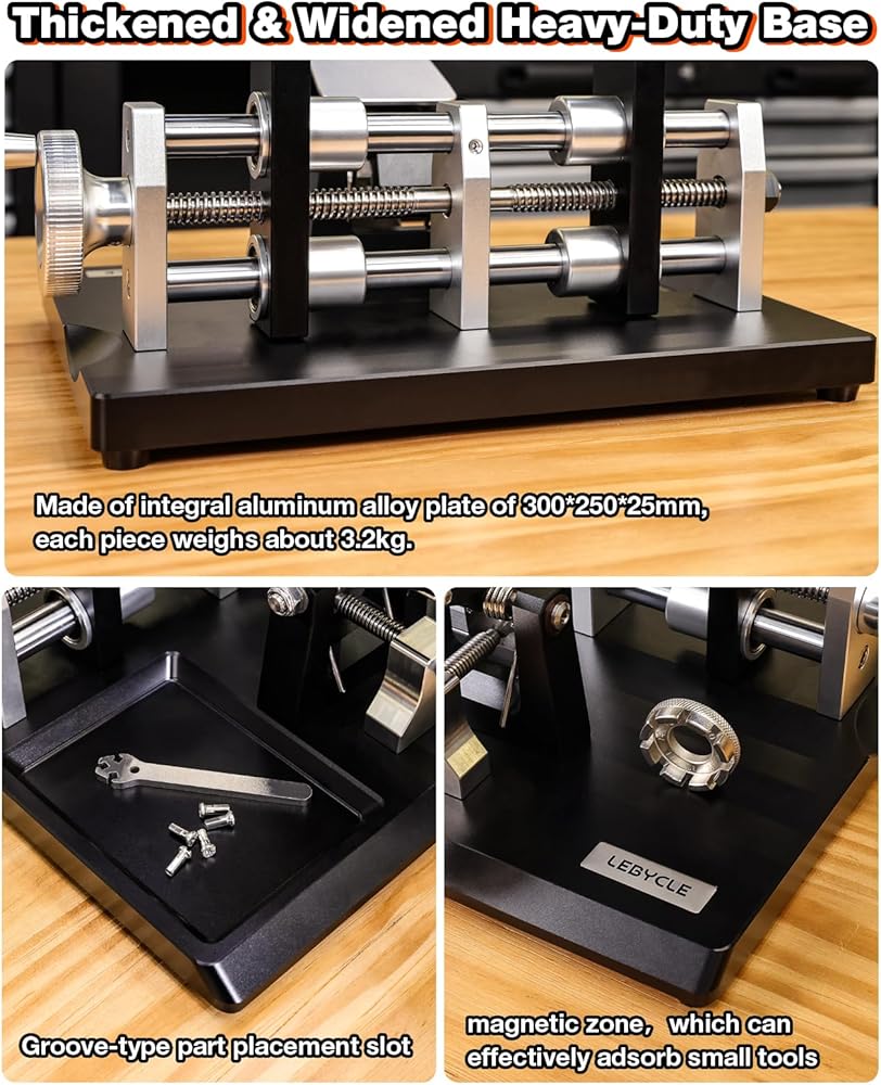 قاعدة قوية ومستقرة: تم تصميم حامل إصلاح الدراجة هذا بلوحة سميكة من سبائك الألومنيوم مقاس 300 × 250 × 25 مم (~3.2 كجم)، ويوفر ثباتًا ممتازًا. تمنع الوسادات المطاطية الموجودة في الأسفل الانزلاق وتحمي سطح عملك