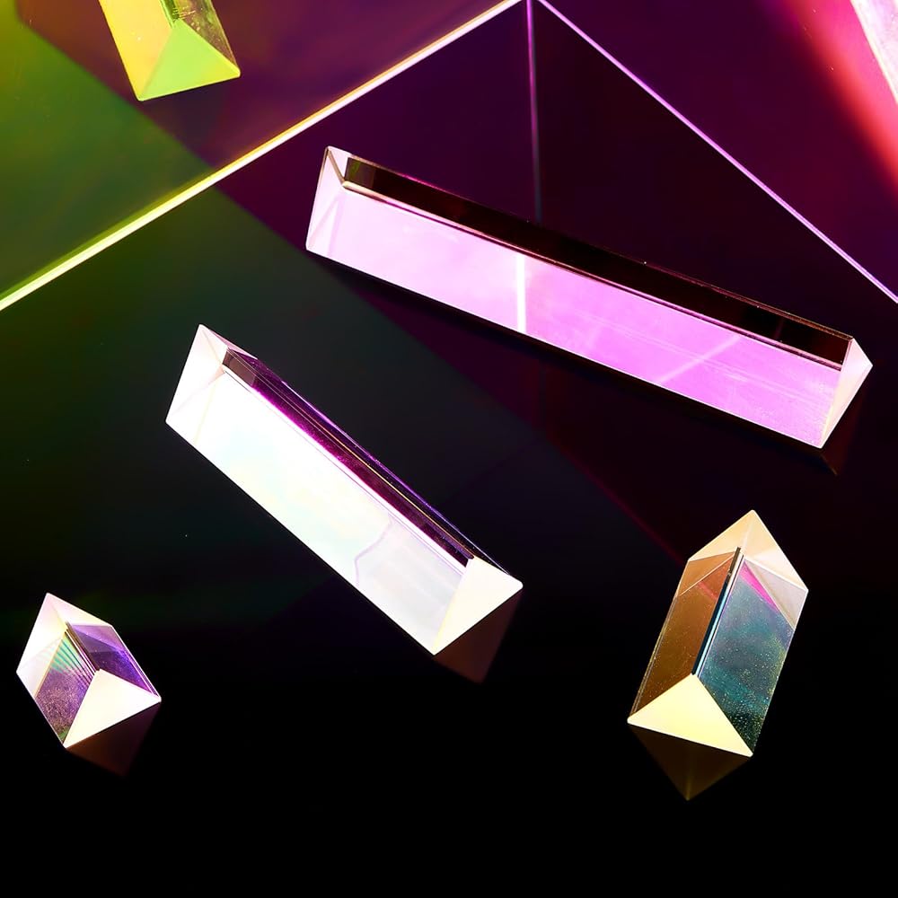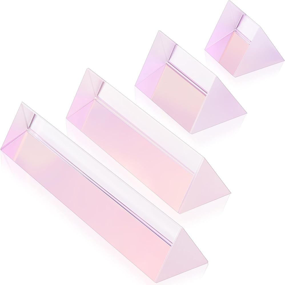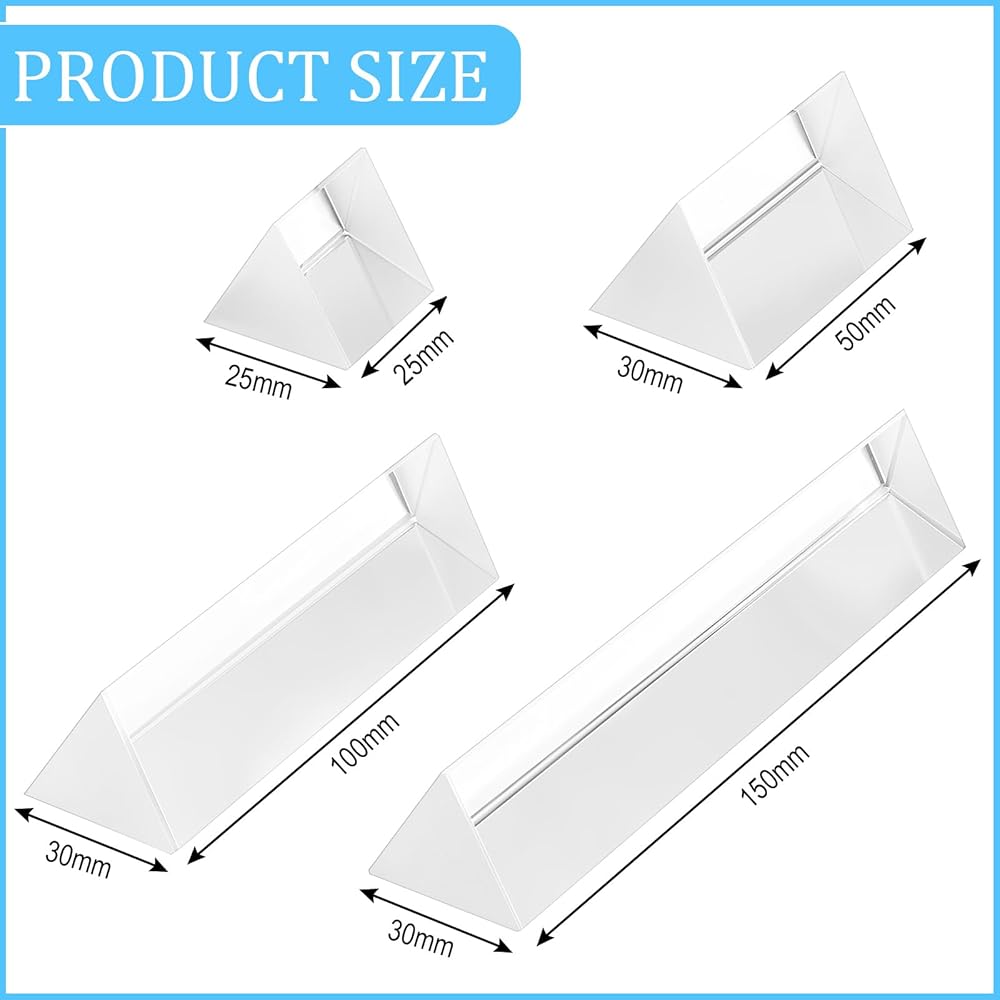 Equilateral Prisms Set: there are 4 pieces of optical glass triangular prisms in the package, which are sufficient to meet your needs in different scenarios, such as light refraction spectrum learning, unique photography, science physics teaching