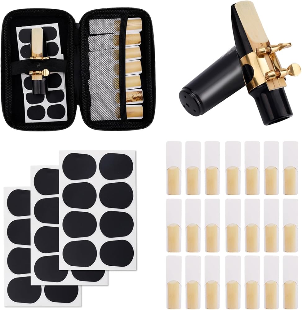 Package Content: You will receive 49 pieces of saxophone parts accessories, including mouthpiece, 21 saxophones 2.5 reeds, 24 mouthpiece pads, 1 plastic cover and 1 eva storage case, this complete set is enough to meet your replacement requirements.
