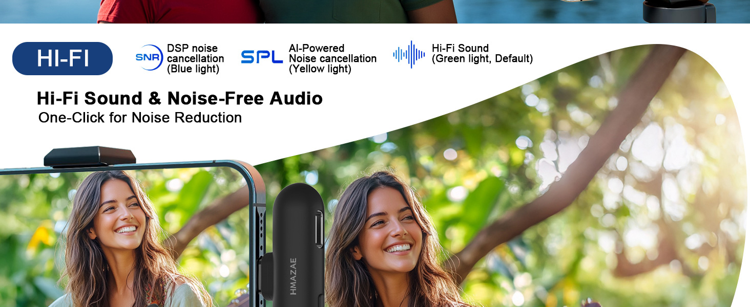 ميكروفون لاسلكي مع خاصية تقليل الضوضاء بالذكاء الاصطناعي: مزود بتقنية تقليل الضوضاء بالذكاء الاصطناعي ثلاثية الأوضاع، يضمن هذا الميكروفون اللاسلكي التقاط صوت واضح للغاية حتى في البيئات الصاخبة. مثالية للمقابلات أو الفصول الدراسية عبر الإنترنت أو جلسات التصوير الخارجية، فهي تقضي على ضوضاء الخلفية للحصول على صوت لا تشوبه شائبة