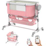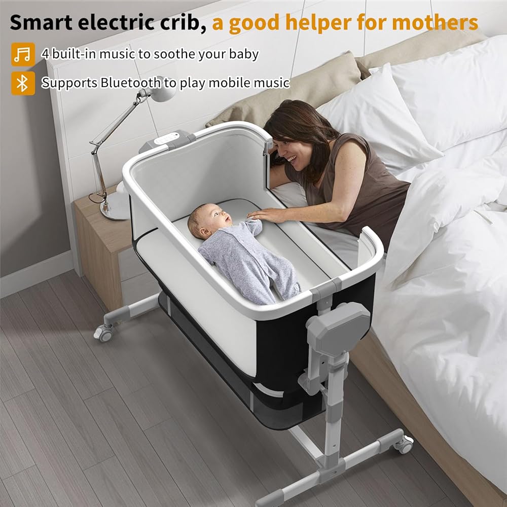 Rocking Bassinet for Baby, Electric Bassinet Automatic 5 Rocking Motion Bassinet Bedside Sleeper for Newborn, Auto Rolling Baby Cradle 6 Height Adjustable with 4 Lullabies, Wheels, Storage