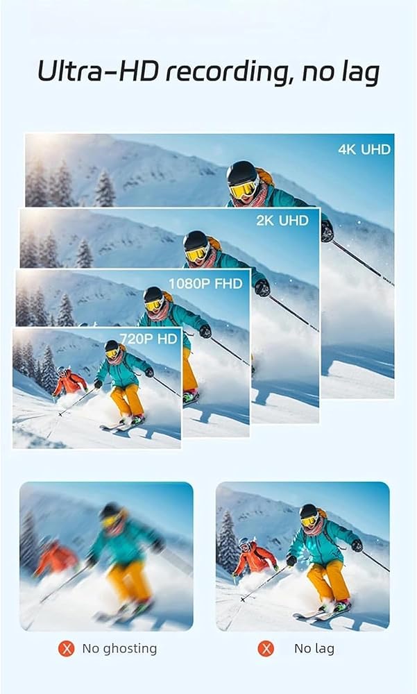 • أداء مقاوم للماء وطويل الأمد: يعمل حتى 30 مترًا تحت الماء مع تصميم متين، مما يوفر ما يصل إلى 150 دقيقة من التسجيل المستمر بدقة 4K - مثالي للغوص أو التزلج أو المغامرات الممطرة