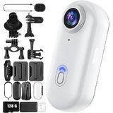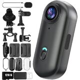 كاميرا POV Pro 4K مقاومة للماء، كاميرا POV مع 6 حوامل مختلفة، كاميرا عمل جديدة ذات زاوية واسعة للغاية ومتعددة الوظائف بجيب الإبهام، رؤية ليلية لتسجيل الفيديو للأنشطة الخارجية (أسود (4K)، 128 جيجا)
