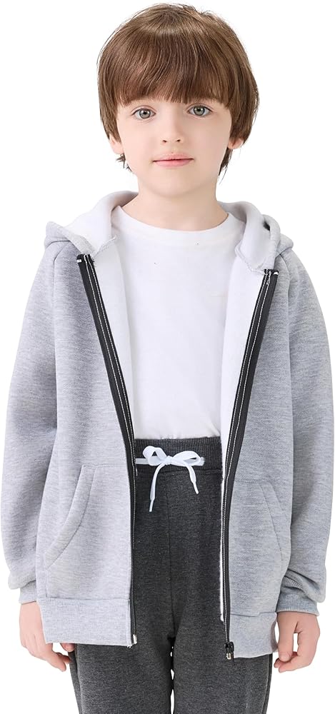 هوديس رياضي للأولاد، كم طويل، سحاب، لون ثابت، مبطن بالصوف، جيوب الكنغر، مقاس مريح. تضيف الخياطة الدقيقة إلى متانتها، وتمنع الاهتراء وتضمن احتفاظها بشكلها وشكلها بمرور الوقت