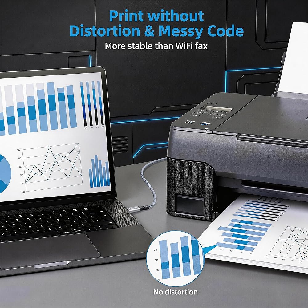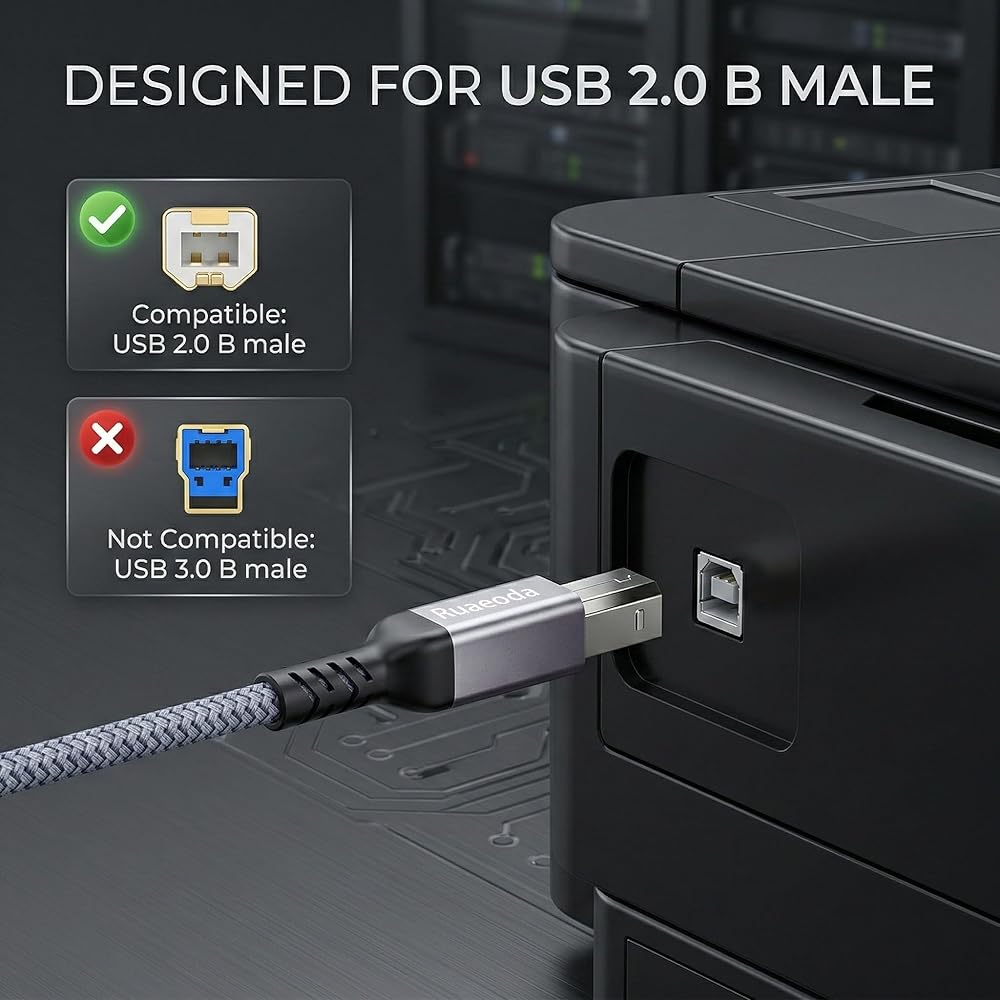 نقل USB 2.0 عالي السرعة: يدعم كابل USB من النوع C إلى USB من النوع B نقل/مزامنة البيانات عالية السرعة حتى 480 ميجابت في الثانية، وهو أسرع وأكثر أمانًا من الاتصال عبر شبكة Wi-Fi. (ملاحظة: هذا كابل USB 2.0 C إلى B، يرجى التأكد من أن جهازك يتضمن منفذ USB 2.0 Type-B أنثى وليس منفذ USB قياسي، أو USB 3.1 Type B، أو منفذ Mini-USB.)