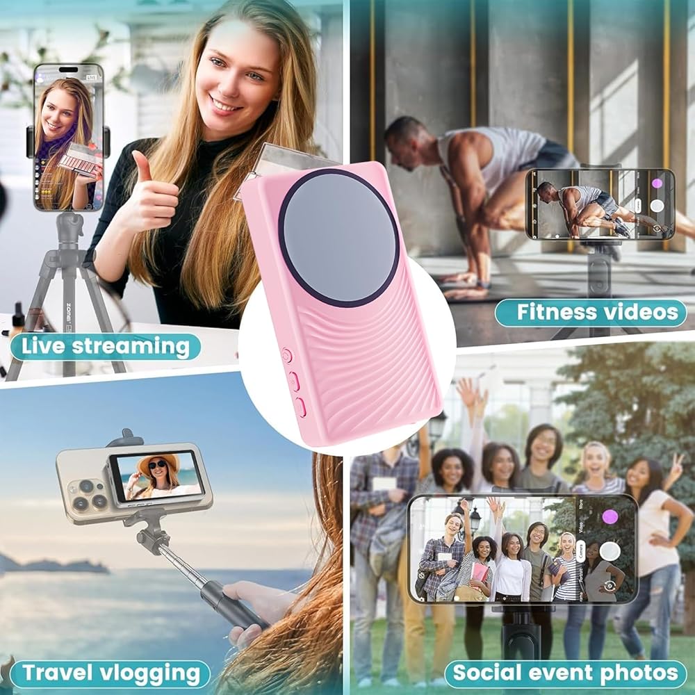 شاشة مراقبة سيلفي لهواتف iPhone/Android، شاشة كاميرا خلفية للهاتف المغناطيسي مع جهاز تحكم عن بعد بلوتوث، تسجيل لاسلكي سيلفي/بث مباشر/TikTok