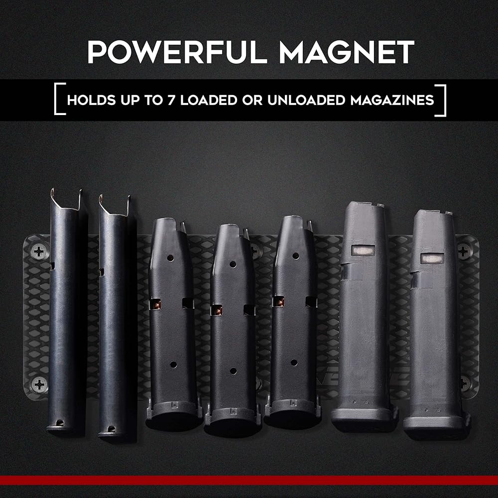 • جودة فاخرة: تصميم متين عالي الجودة، مصنوع ليدوم طويلاً. سوف تمسك مغناطيسات النيوديميوم القوية بمجلات الأسلحة النارية الخاصة بك بقوة. قوية بما يكفي لحمل ما يصل إلى 7 مشابك أو مجلات معدنية محملة أو مفرغة.
