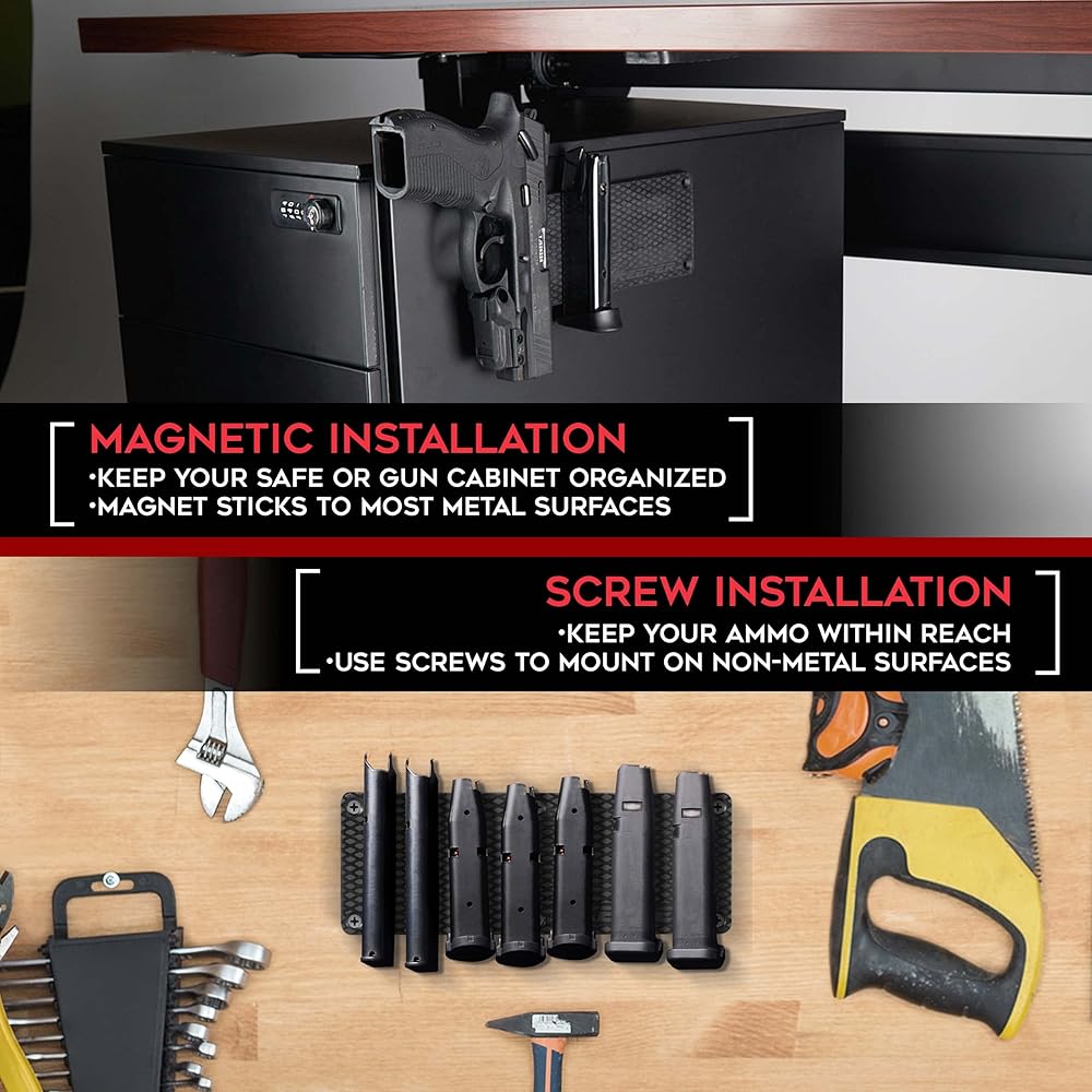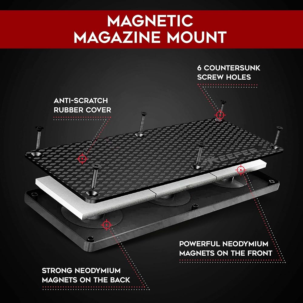 حامل ذخيرة مغناطيسي من Keeper MG لمجلات ومشابك الأسلحة، وتنظيم التركيب في مسدسك الآمن، وخزانة الخزانة، والقبو، وملحقات تخزين الذخيرة النهائية للمسدس، وأكواب Oistol والبنادق، أسود
