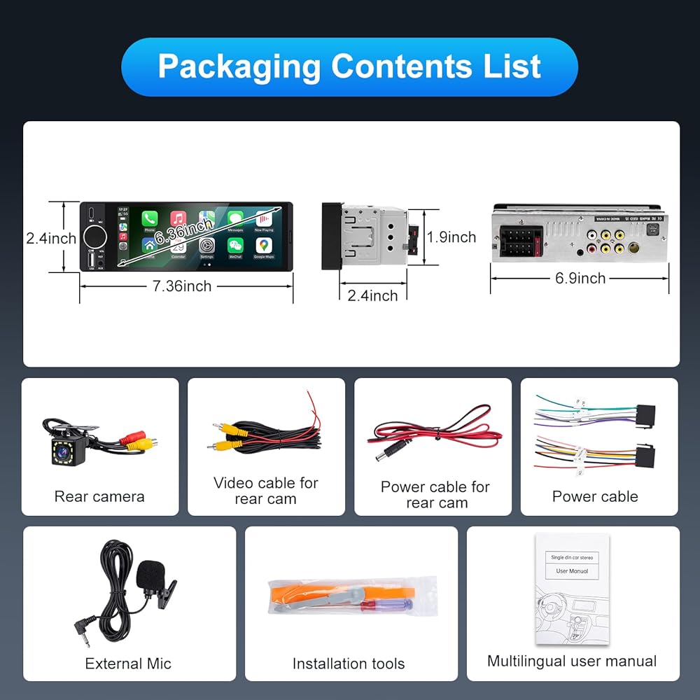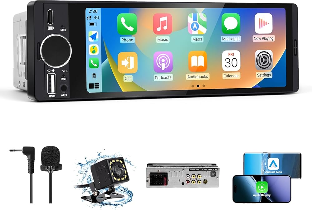 Upgrade your driving experience with this advanced Single Din Car Stereo, seamlessly integrating your digital life with your vehicle. The centerpiece is a vibrant 6.36-inch HD touchscreen that brings Wireless Apple CarPlay and Android Auto to your fingertips. After a simple one-time setup, your smartphone automatically connects via Bluetooth upon every car start, giving you instant wireless access to navigation, music, calls, and messages for a safer, more connected journey. Take full command with your voice using Siri or Google Assistant, made crystal clear by the included external microphone that effectively minimizes background noise for impeccable call quality and reliable commands. Park with absolute confidence using the provided night-vision backup camera, which features 12 powerful LEDs to illuminate the darkest environments and dynamic parking guidelines for precision maneuvering in rain or total darkness. Audiophiles will appreciate the worldwide FM tuner and professional 10-band equalizer, allowing you to customize sound settings directly on the screen or choose presets for studio-quality audio playback. Control everything effortlessly with the tactile Smart Knob for volume, mute, and screen lock, or by using your existing Steering Wheel Controls (SWC) to manage tracks and calls safely. Additionally, enjoy wired or wireless screen mirroring to project your favorite apps. This feature-packed stereo, complete with modern USB Type-C connectivity, is the ultimate solution to modernize any car. (Note: If your device initially supports only wired Mirror Link, contact us for a free software upgrade to enable wireless functionality.)