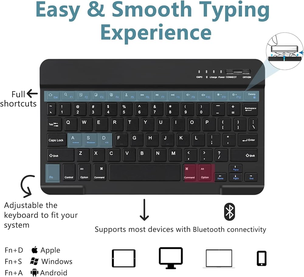 【قابلية حمل محسنة】: تتميز لوحة مفاتيح iPad الجيل العاشر الخاصة بنا بتقنية بلوتوث المتقدمة مع نطاق اتصال ثابت يصل إلى 10 أمتار، مما يمنحك راحة البال! التصميم المطور القابل لإعادة الشحن يجعل من السهل استخدامه في المنزل أو المكتب أو في الهواء الطلق. يمكنك أيضًا توصيله بجهاز كمبيوتر أو هاتف يدعم تقنية Bluetooth لحل مشكلات متعددة في وقت واحد. بحاجة الى مساعدة؟ تحقق من الدليل أو اتصل بفريق خدمة العملاء لدينا.