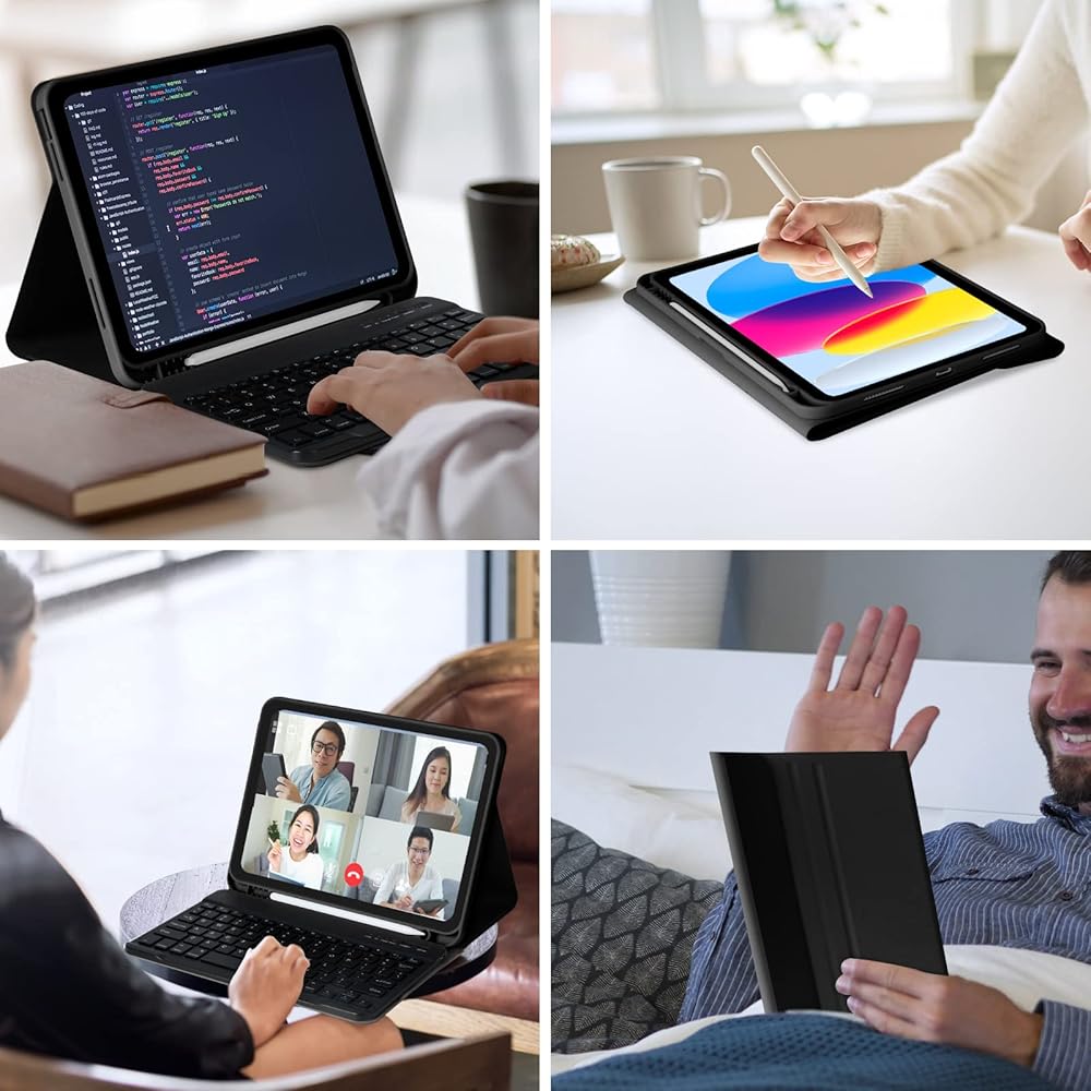 【مواد فاخرة】: لوحة المفاتيح هذه لجهاز iPad الجيل العاشر مصنوعة من جلد TPU المتين مع بطانة ممتصة للصدمات، مما يوفر حماية معززة لجهاز iPad الخاص بك ويجعل تنظيفه أسهل. تعمل أيضًا آلية مغناطيسية مدمجة على تأمين لوحة مفاتيح Bluetooth الخاصة بك لمنع الحركة العرضية. ملحوظة: لمزيد من الحماية لجهاز iPad الخاص بك، نوصي بإزالة لوحة مفاتيح Bluetooth عند إغلاق الحافظة.