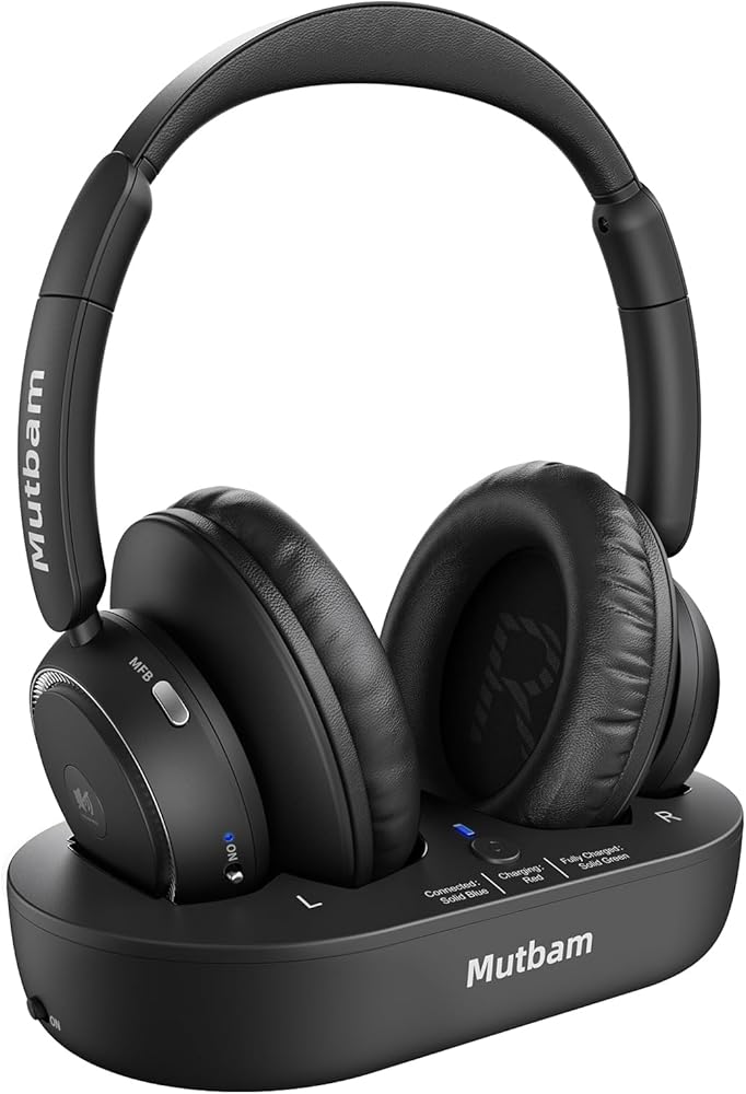 عمر بطارية طويل - ما يصل إلى 65 ساعة من وقت التشغيل: استمتع بترفيه متواصل مع عمر بطارية مثير للإعجاب يصل إلى 65 ساعة بشحنة واحدة. تم تصميم سماعات الرأس اللاسلكية للتلفزيون هذه لتوفير راحة وموثوقية ممتدة، حتى تتمكن من مشاهدة برامجك المفضلة أو الاستمتاع بجلسات التلفزيون الليلية دون القلق بشأن نفاد الطاقة. تعمل قاعدة الشحن المريحة كجهاز إرسال، حيث تقوم بإعادة شحن سماعات الرأس تلقائيًا عند وضعها على قاعدة الشحن - بدون أسلاك أو متاعب.