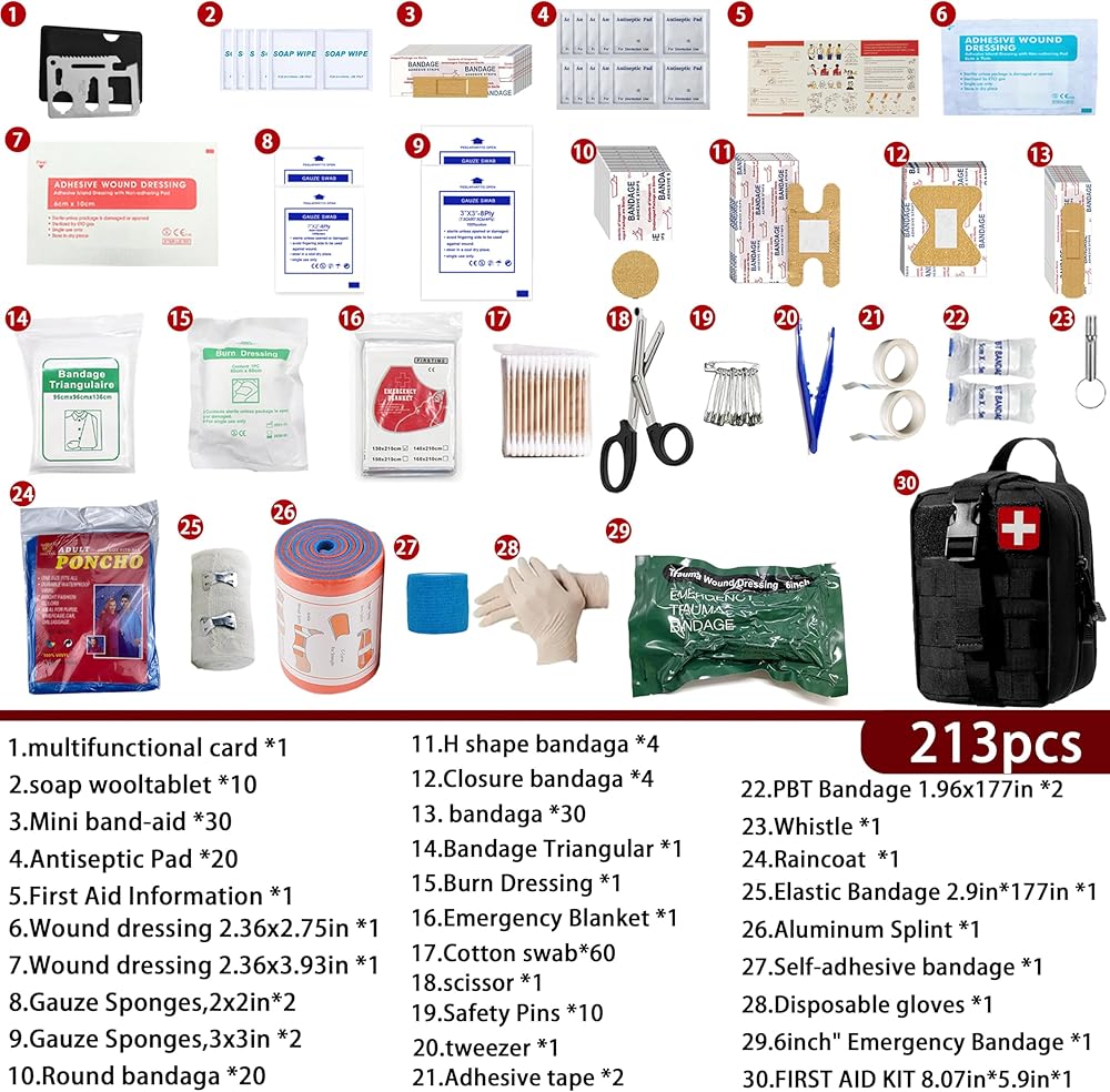 • ✅【نظام حماية احترافي】طقم أمان النجاة مكون من 203 قطعة: جبيرة قابلة للتشكيل، نظام ضمادة ضغط عالي المرونة، بطانية حرارية، إلخ. للاستعداد لحالات الطوارئ في الهواء الطلق - مما يمنحك راحة البال لاحتضان مغامرات الطبيعة. لأن كل مستكشف يستحق أن يشعر بالاستعداد