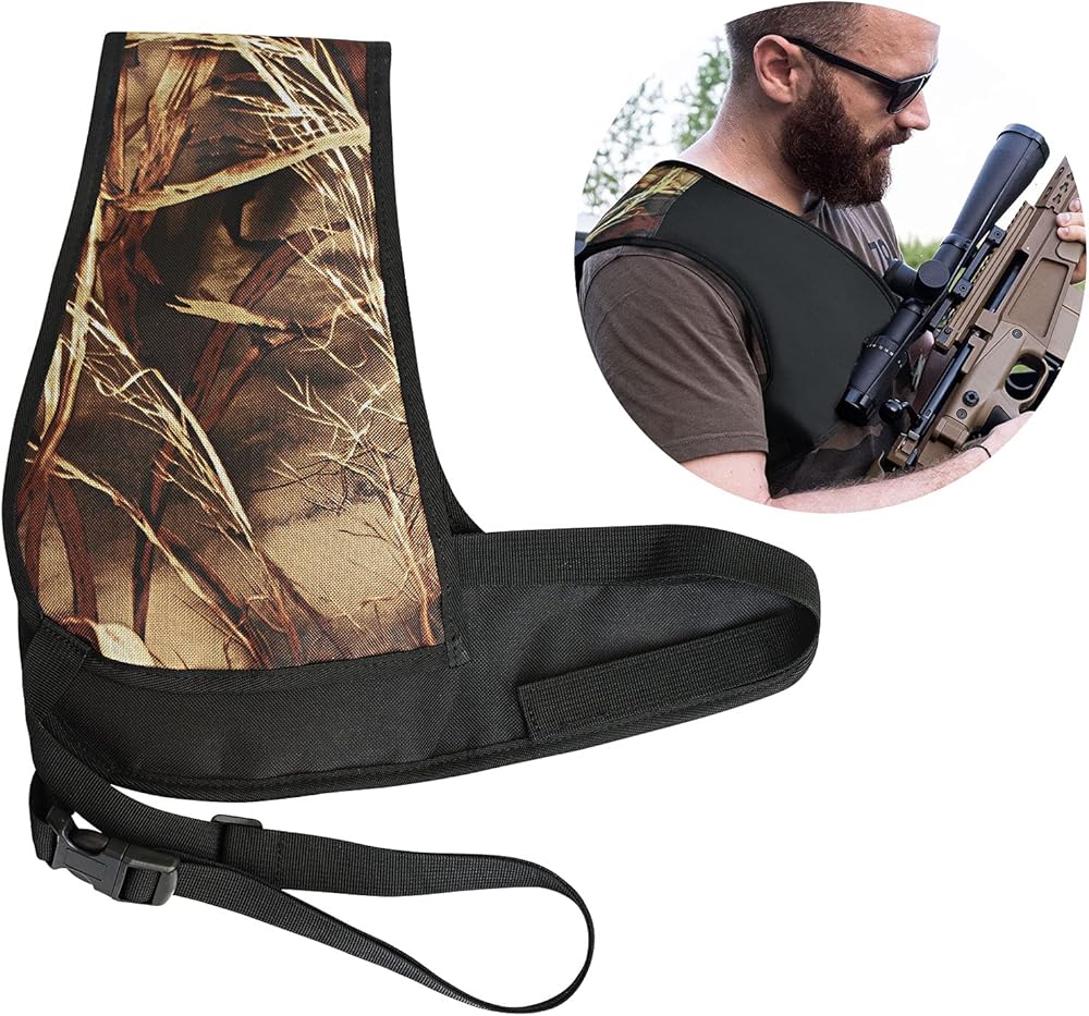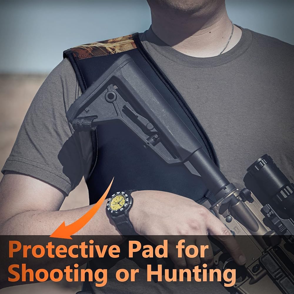 مقاس عالمي: يعمل بشكل جيد حقًا، وسوف يناسب أي شخص، عليك فقط شد الأشرطة. ما عليك سوى قلبها من الداخل إلى الخارج، وستكون الوسادة في الموضع الصحيح لمطلق النار الذي يستخدم اليد اليسرى. مثالية للرماية في الهواء الطلق والصيد وما إلى ذلك. يمكن خلع وسادة الكتف بسهولة للغسيل.