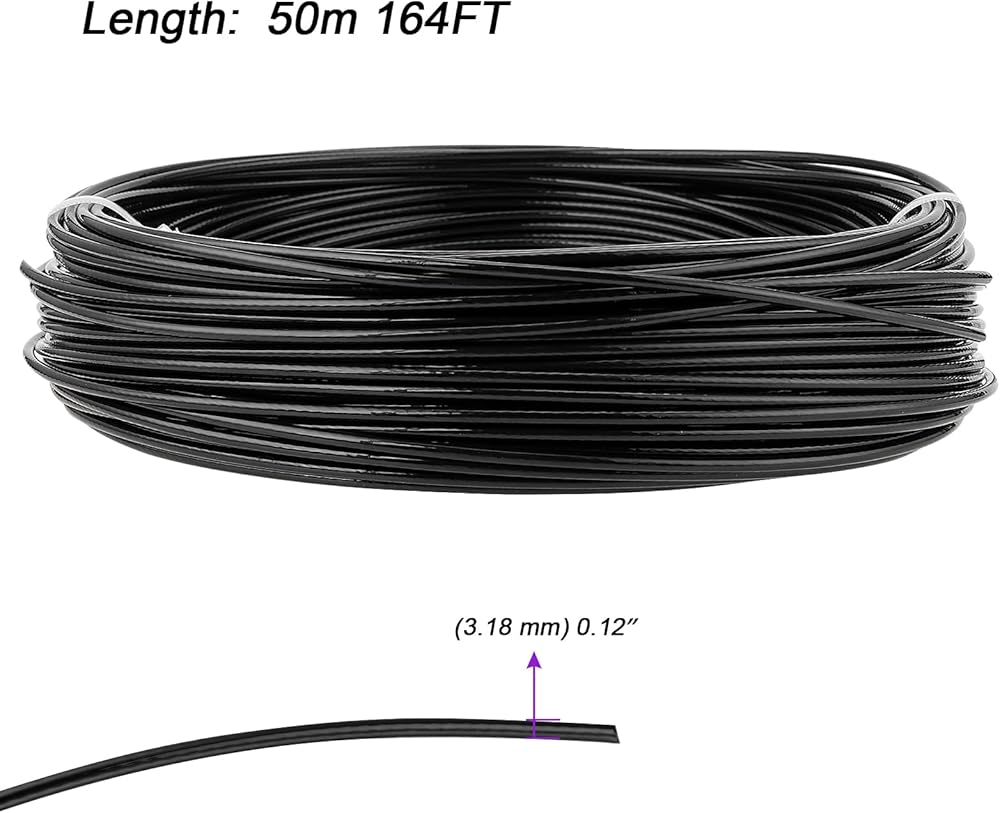 VERSATILE ROPE - The black vinyl coated cable are ideal for deck cable railing, stair railing and so on. Since they're insulated, also suitable and safe for hanging string lines, photo, clothes or any hanging needed, outdoor guide wire.