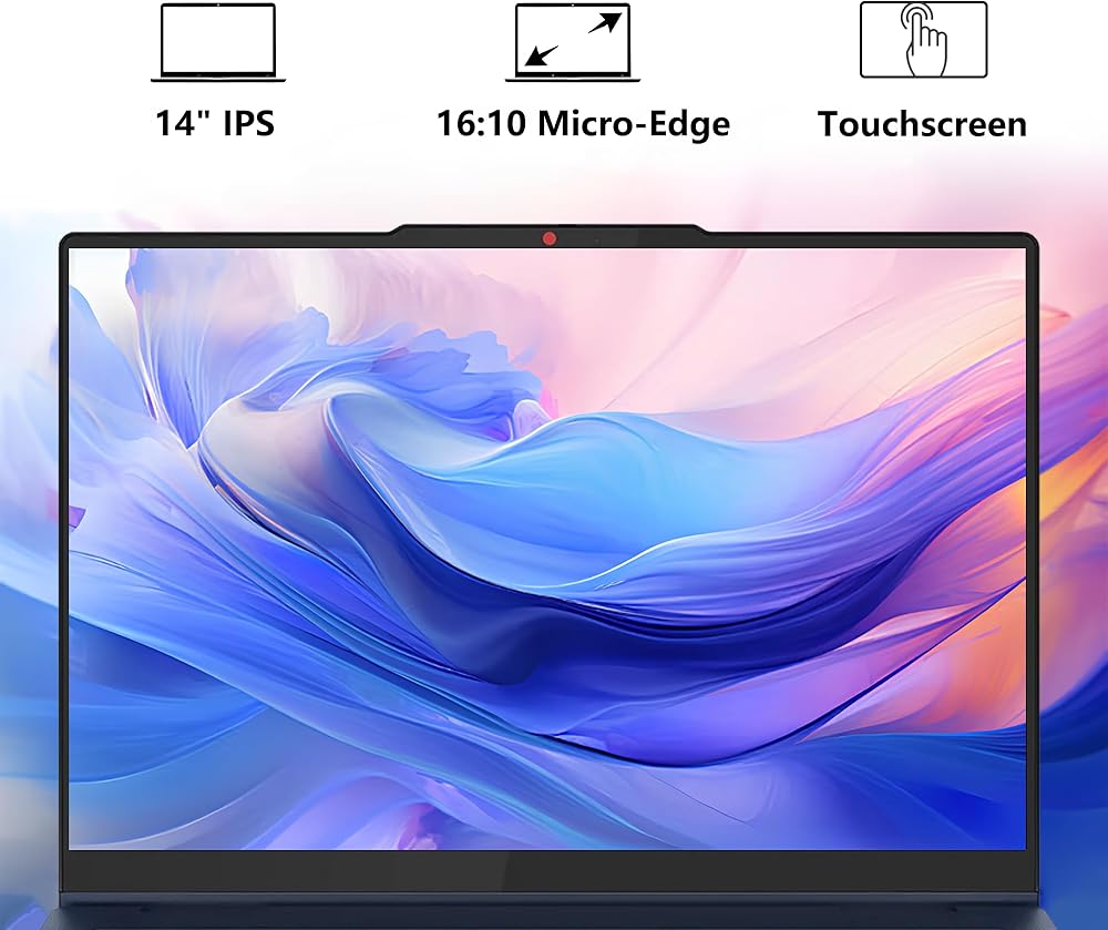 • 【Strong Graphics and Display】:14" WUXGA (1920x1200) IPS 300nits Glossy, 45% NTSC, 60Hz, TÜV Low Blue Light, Glass, Touch; Integrated AMD Radeon 840M Graphics