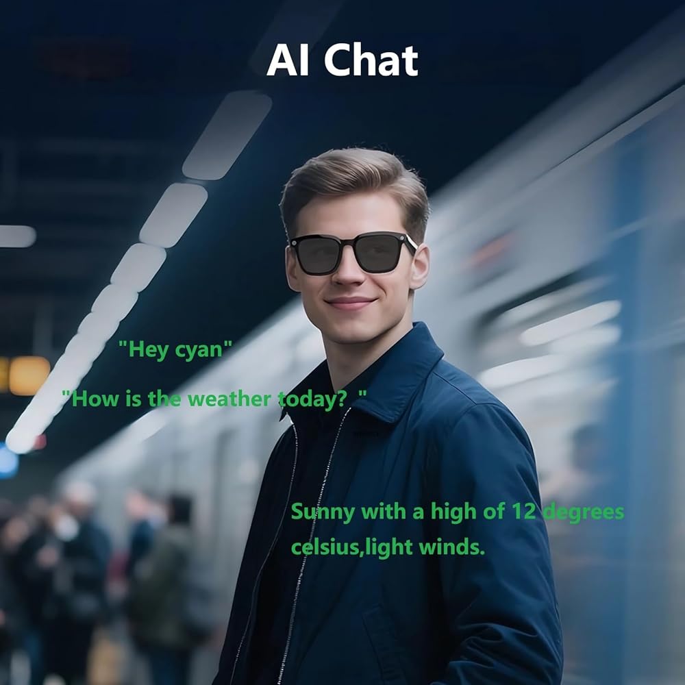 【مساعد صوت AI تحت أمرك】: قم بتنشيط مساعدك الذكي بقول "HeyCyan" للحصول على المعلومات وطرح الأسئلة وتلقي ردود منطوقة فورية. للحصول على الوظائف الكاملة، يجب أن يكون تطبيق HeyCyan قيد التشغيل على هاتفك ومتصلاً بالنظارات. قد تختلف وظيفة المساعد الصوتي حسب المنطقة.