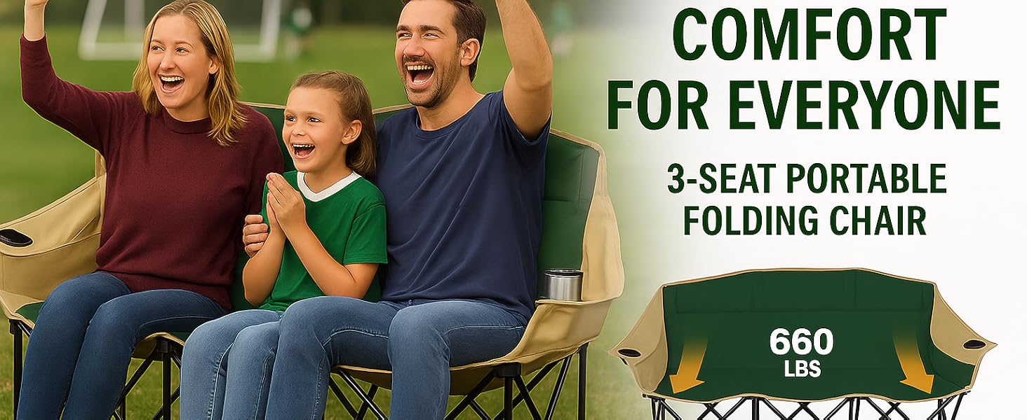 • ✅ مقاعد فورية لثلاثة أشخاص - مثالية للتخييم أو التخييم أو ألعاب كرة القدم أو رحلات الشاطئ أو حفلات الشواء في الفناء الخلفي. يمكن فتحه في ثوانٍ لتوفير مقعد مريح للاعبين أو المتفرجين أو العائلة.