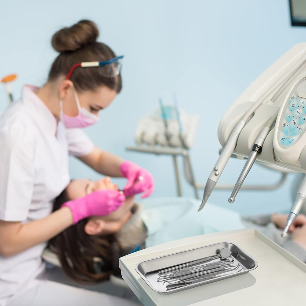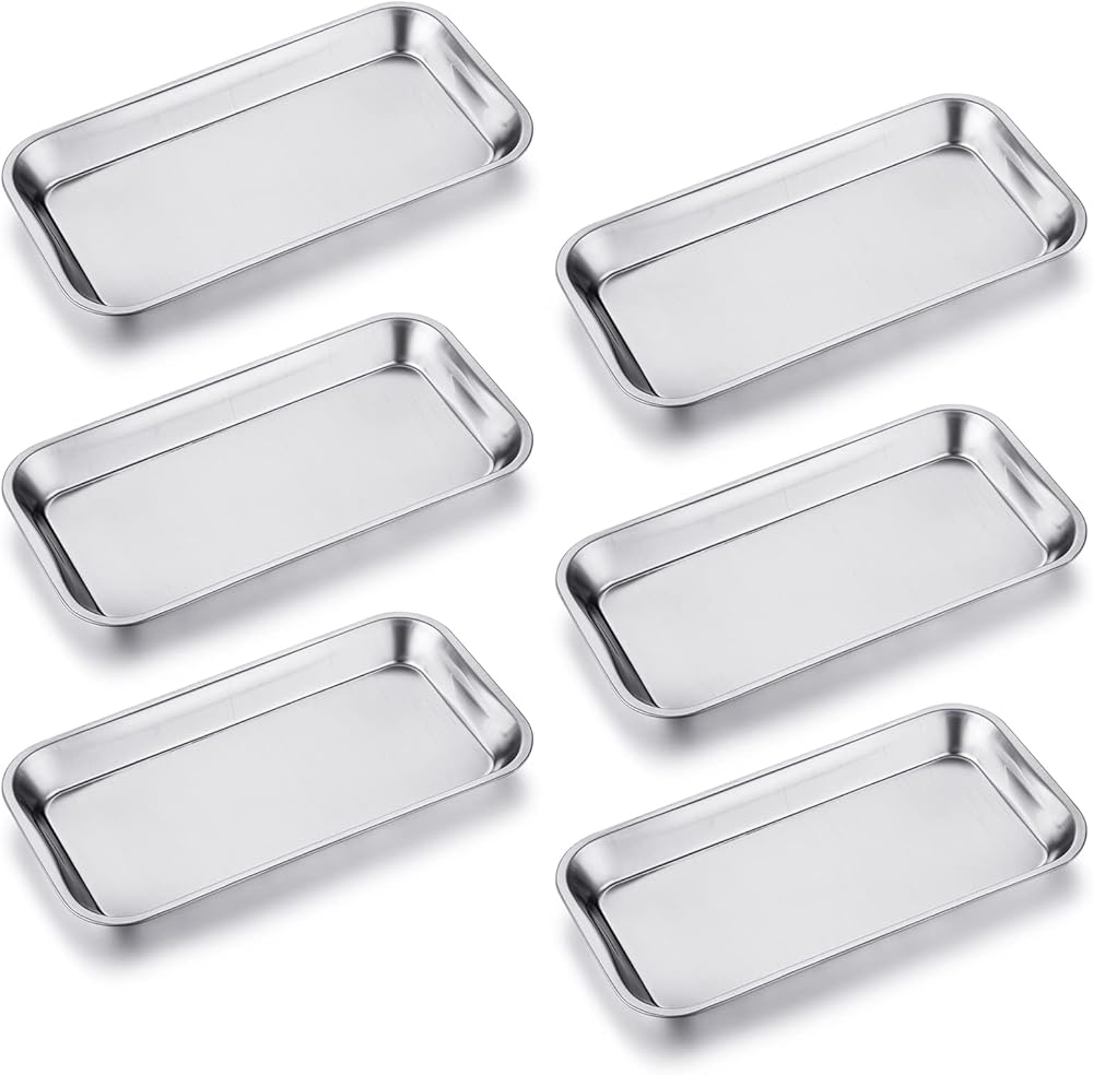 6 عبوات من صينية جراحية صغيرة من GETTON، 201 صينية من الفولاذ المقاوم للصدأ مع صواني غير ملحومة وارتفاع متوسط للحافة لمنظم أدوات ثقب وشم الأسنان في المختبر