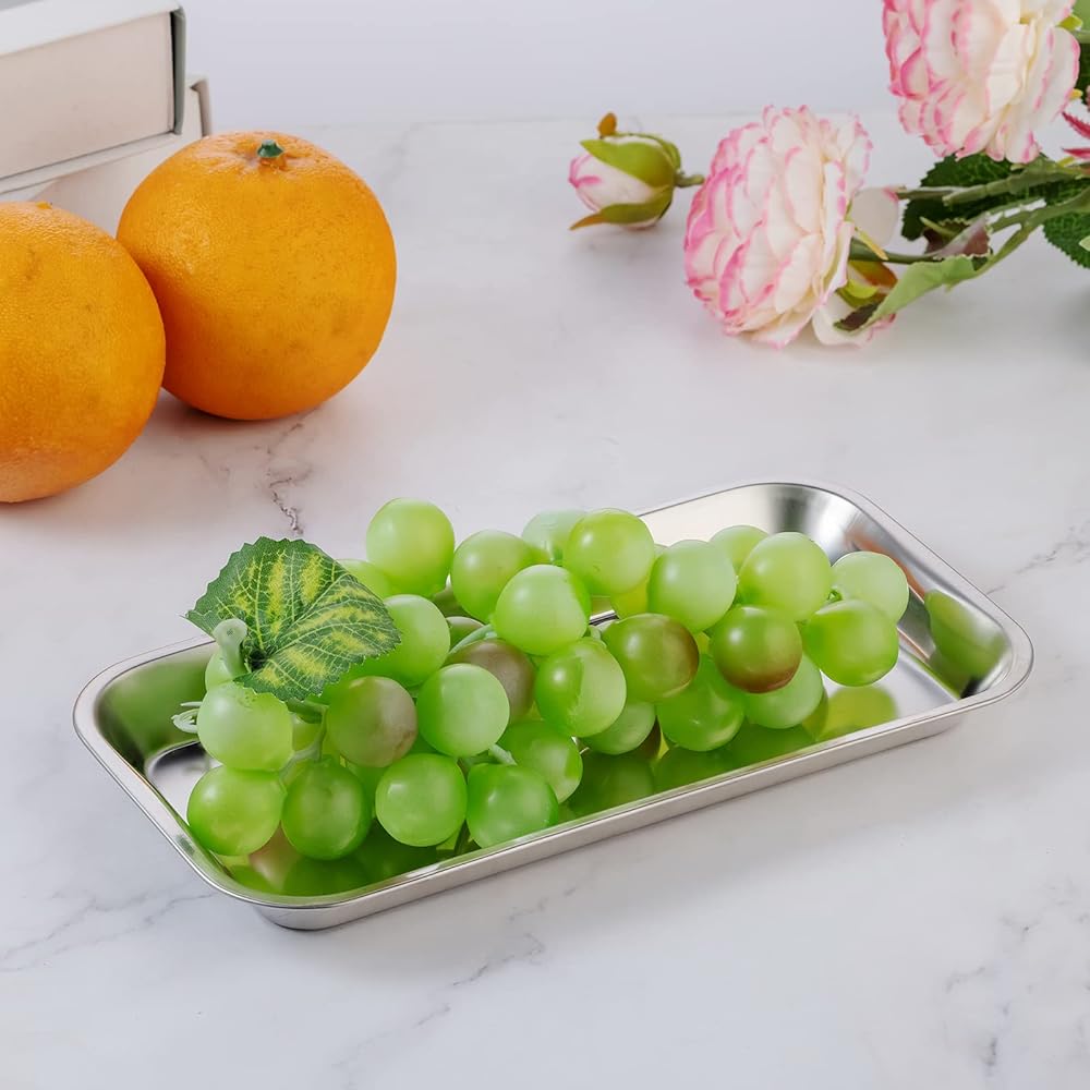 【عبوة قيمة مكونة من 6 قطع】تأتي هذه الصواني المصنوعة من الفولاذ المقاوم للصدأ مع إجمالي 6 عبوات بحجم 8.85 × 4.6 × 0.8 بوصة. حزمة مبالغ فيها بسعر في المتناول. حجم مثالي للحفاظ على الأشياء مرتبة ومنظمة.