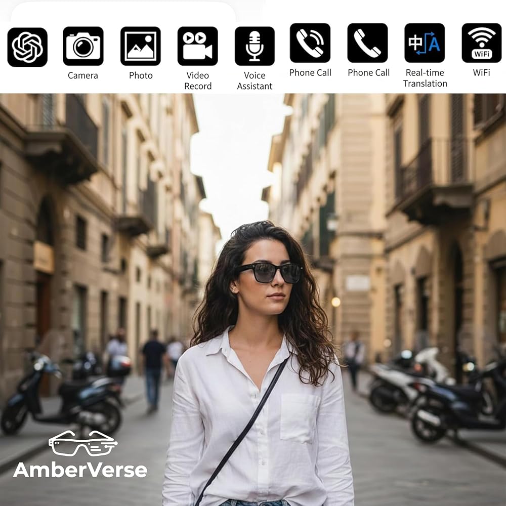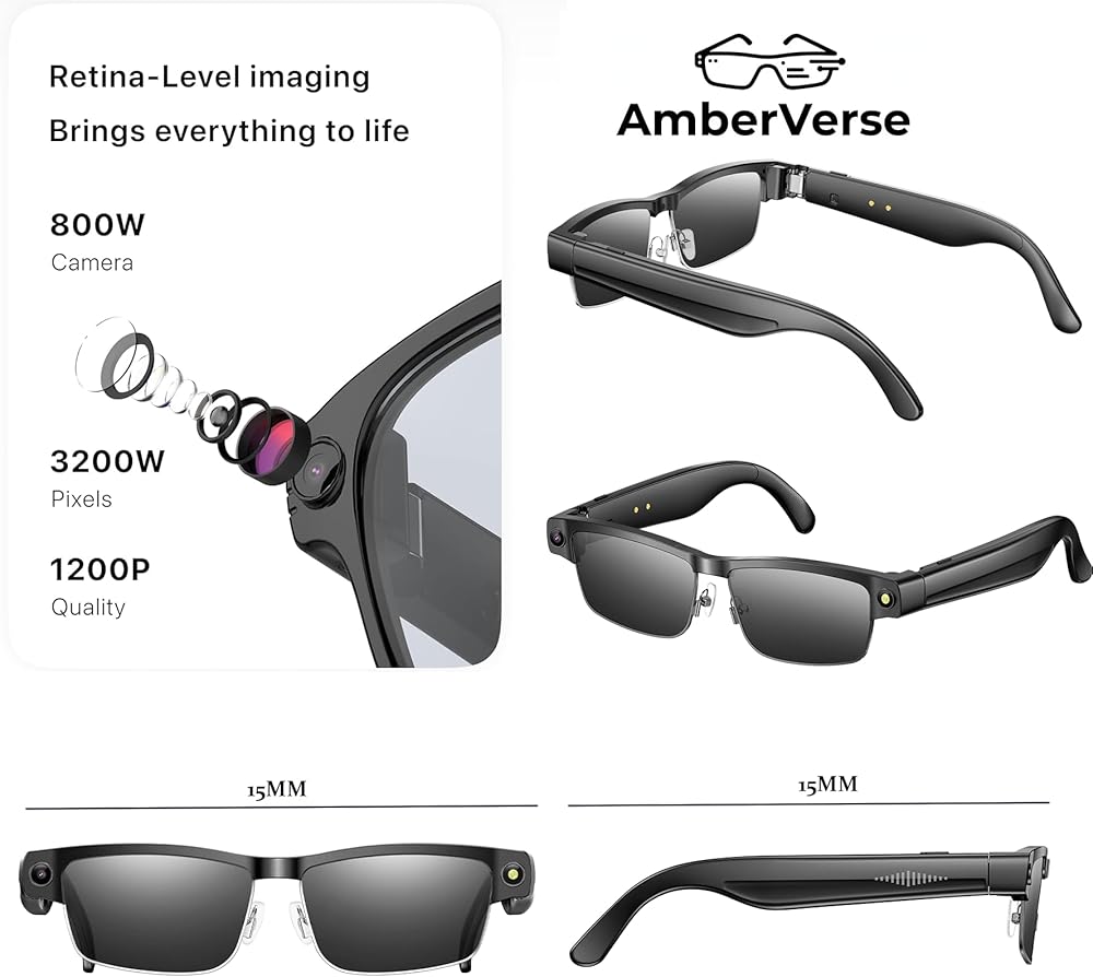 • 【نظارة AmberVerse الذكية المزودة بكاميرا عالية الدقة بدقة 8 ميجابكسل】 التقط كل لحظة دون استخدام اليدين باستخدام نظارات الكاميرا التي تعمل بالذكاء الاصطناعي. مثالية لمدونات الفيديو أو ركوب الدراجات أو المشي لمسافات طويلة أو المغامرات اليومية.