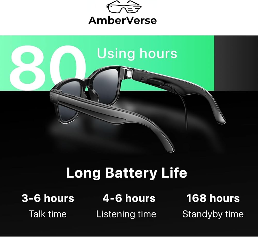 • 【تقليل ضوضاء الميكروفون المزدوج للمكالمات الواضحة】 تحجب نظارات AmberVerse AI ضوضاء الخلفية، مما يضمن مكالمات صوتية واضحة حتى في البيئات الصاخبة أو أثناء القيادة.