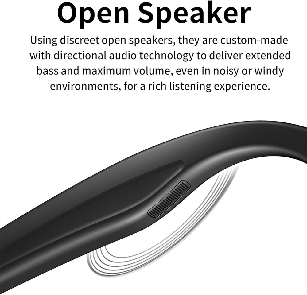 • 【نظارات صوتية بلوتوث مفتوحة الأذن】 استمع إلى الموسيقى، وقم بإجراء المكالمات، وابق على علم بما يحيط بك. تعتبر نظارات البلوتوث هذه مثالية لممارسة الرياضة والتنقل والأنشطة الخارجية.