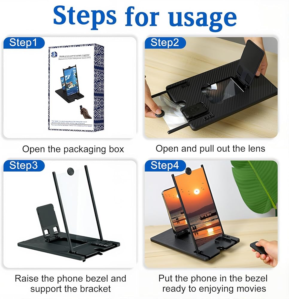 [تصميم مضخم شاشة عالي الدقة ثلاثي الأبعاد قابل للطي] - تصميم قابل للطي من نوع تخزين مضخم الهاتف الخلوي. يمكن أن يضاعف حجم شاشتك، مما يوفر صورة عالية الدقة وواضحة تمامًا مثالية للاستمتاع بالأفلام والعروض والألعاب. إذا لم يكن الارتفاع كافيًا، فيمكن تعديل الارتفاع باستخدام الحامل الدائري. نحيف للغاية عند طيه ويمكن أيضًا حمله في حقيبتك. مثالي للاسترخاء في السرير أو على الأريكة على مسافة مشاهدة مثالية تبلغ 1.5-2 متر.