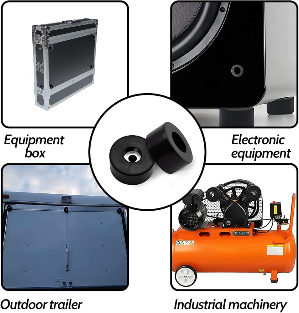 * These vibration-mounted rubber feet can be used in new projects as lost or damaged feet, mounted in air compressors, speaker cabinets, computer table feet, sofa cushions or other applications.