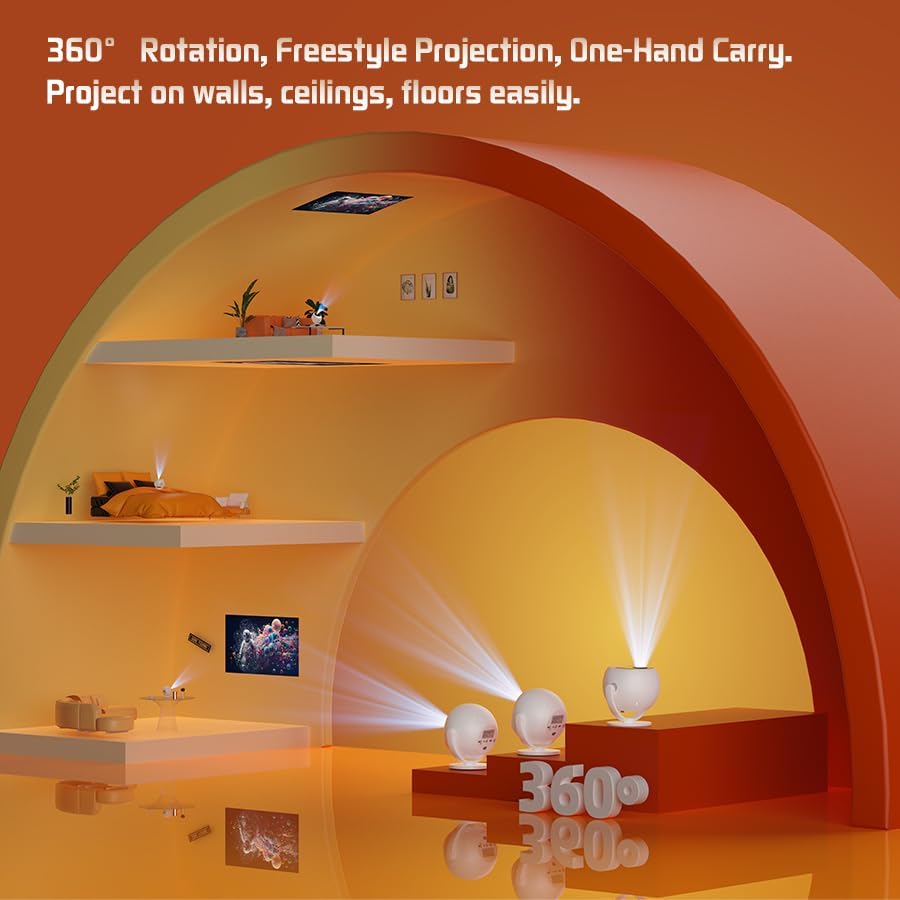 【جهاز عرض صغير دوار 180 درجة】قاعدة جهاز العرض مجهزة بدعامة دوارة 180 درجة، مما يسمح لجهاز العرض بالإشارة إلى اتجاهات مختلفة، بما في ذلك من الجدار إلى السقف. انغمس في شاشة عريضة مقاس 30-130 بوصة للحصول على تجربة مشاهدة غامرة حقًا.
