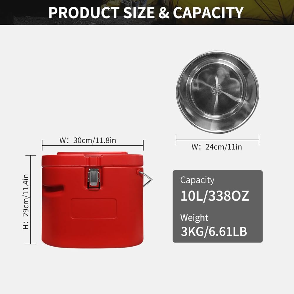 [High quality material, large capacity to meet the needs of a family] Commercial Food Warmer Total size :30*29cm, can accommodate 10L of food, to adapt to the needs of a family travel and other occasions. We attach importance to the health of consumers, the use of food grade 304 stainless steel, to ensure product safety and food hygiene