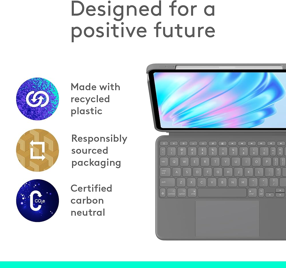 Type, sketch, view and read with the Combo Touch keyboard case. A flexible kickstand and a full-size, detachable keyboard give you multiple use modes for any task. Take iPad further with a bigger trackpad that gives you superior, intuitive tracking experience with familiar Multi-Touch gesture controls. The slimmest Combo Touch yet, it slips into bags, travels light, and powers your productivity anywhere. The uniquely sturdy, yet lightweight case keeps your iPad safe from scuffs and scratches, while adjustable backlit keys glow elegantly with precise lighting, so your mood-lit work sessions are more enjoyable than ever. Take iPad further with Combo Touch.