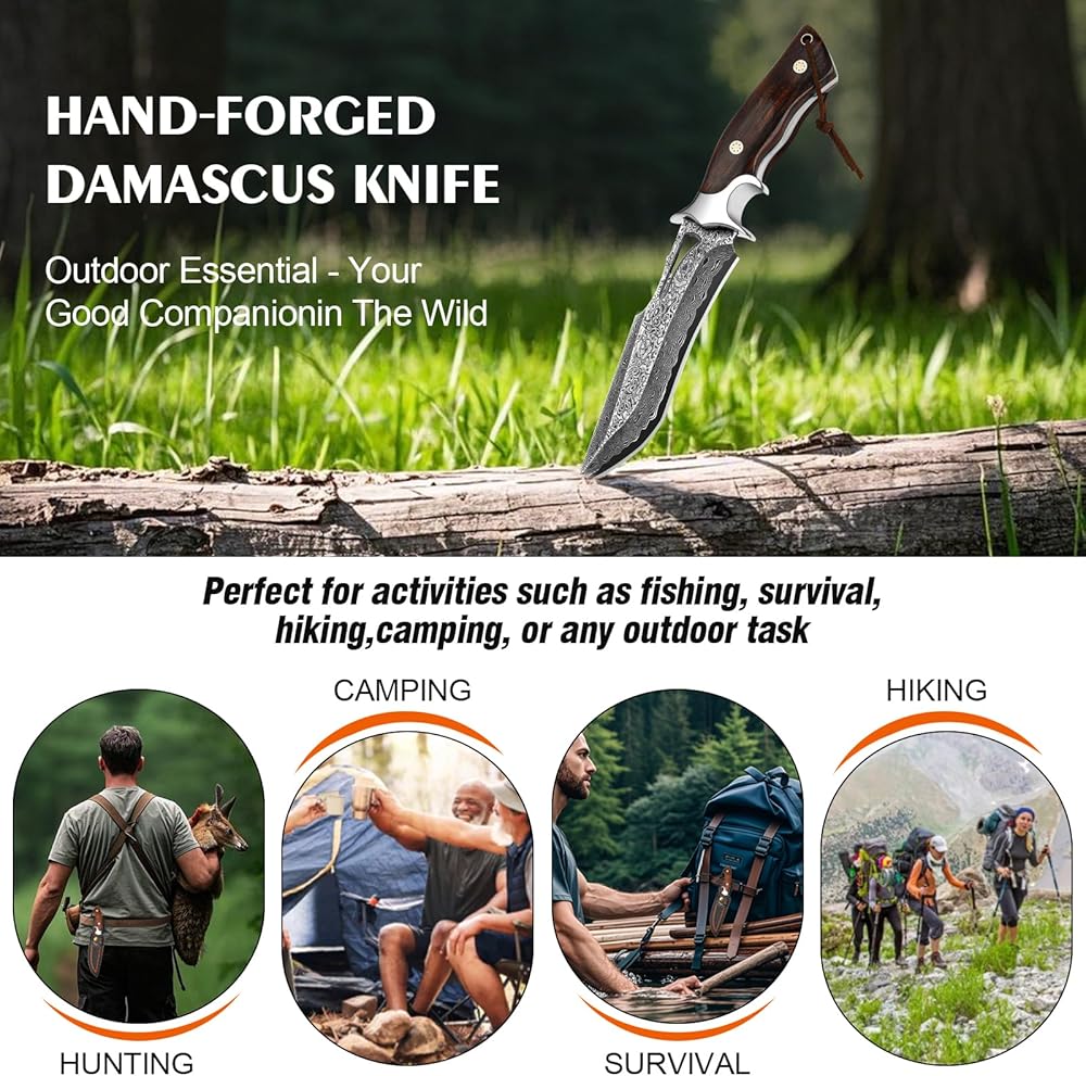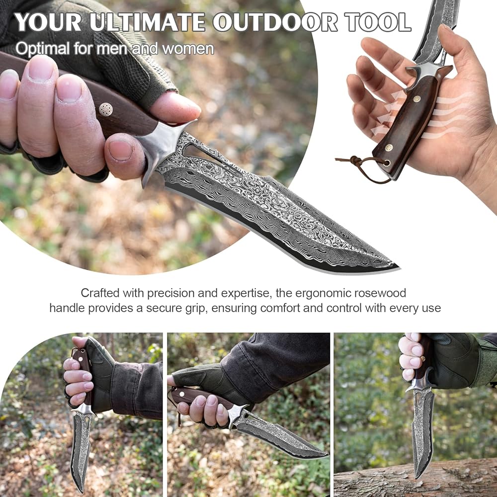 • قوة لا مثيل لها: سكاكين الصيد للرجال مصنوعة بدقة وخبرة. يوفر المقبض المريح من خشب الورد قبضة آمنة وغير قابلة للانزلاق، مما يضمن الراحة والتحكم مع كل استخدام. باعتبارها أداة صيد ممتازة، فهي مثالية لصيد الأسماك أو البقاء على قيد الحياة أو المشي لمسافات طويلة أو التخييم أو أي نشاط خارجي