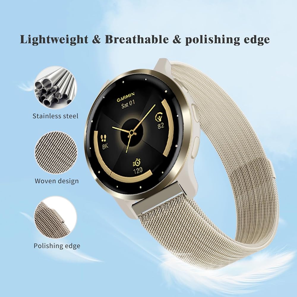 【الموديلات المتوافقة: سوار الساعة المغناطيسي المعدني الشبكي 18 مم من koazon متوافق مع Garmin Venu 3S/Venu 4 41 مم/Venu 2S/Forerunner 265S/255S/255S Music/Vivoactive 4S/Vivoamove 3S (الساعة غير متضمنة)