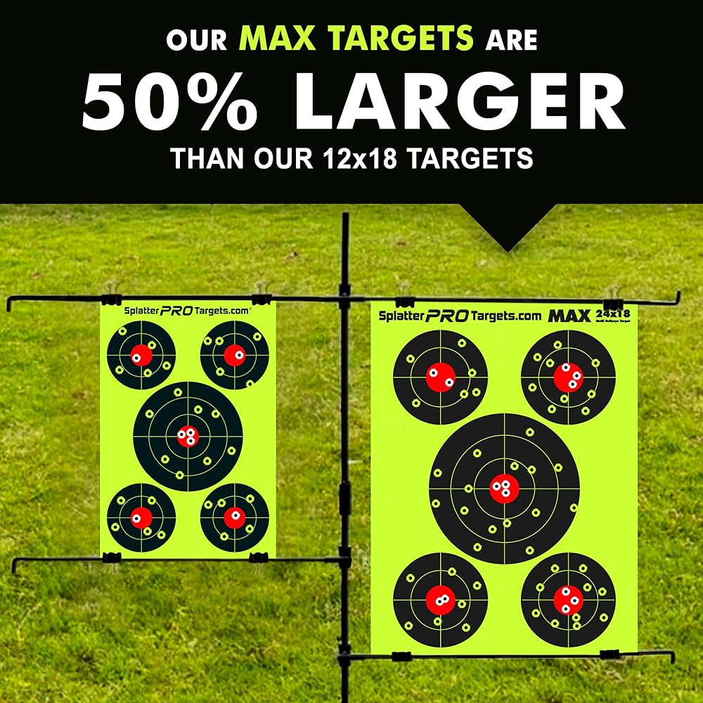 Extra Large Targets, perfect for long distance shooter. The LARGE contrasting SPLATTER around your shots makes them visible in all lighting conditions.