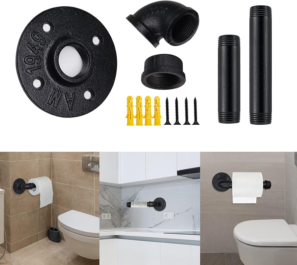 【EASY INSTALL】This item is easy to assemble & install, and come with all the screws and anchors to mount on concrete walls or wooden shelf on the wall. Be sure to clean the threads of oil before hanging anything on them, once wiped the oil from manufacturing, it looks great.