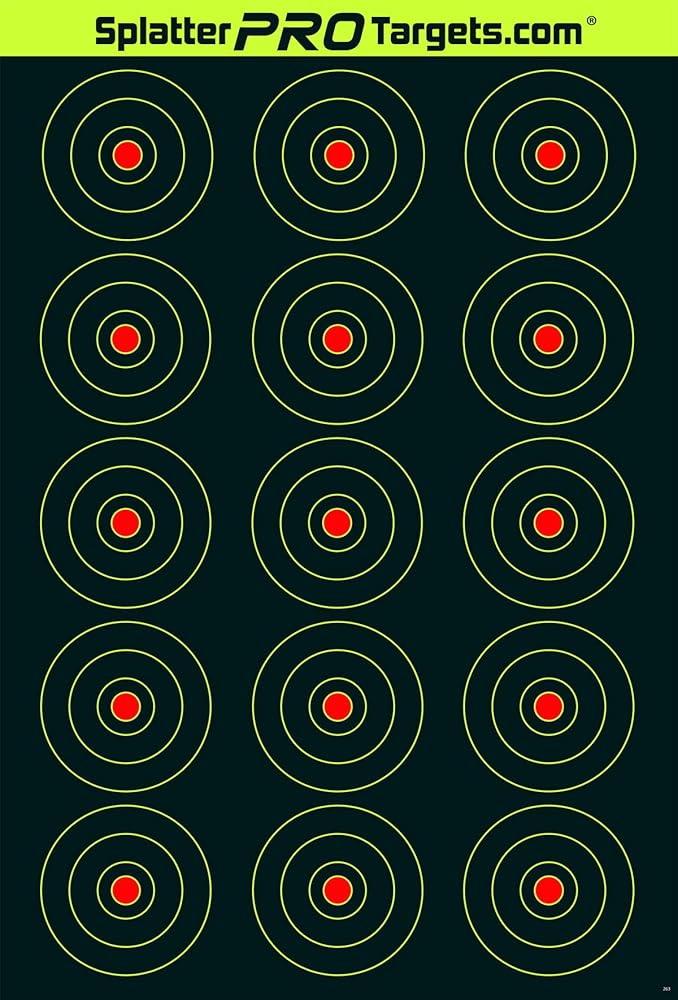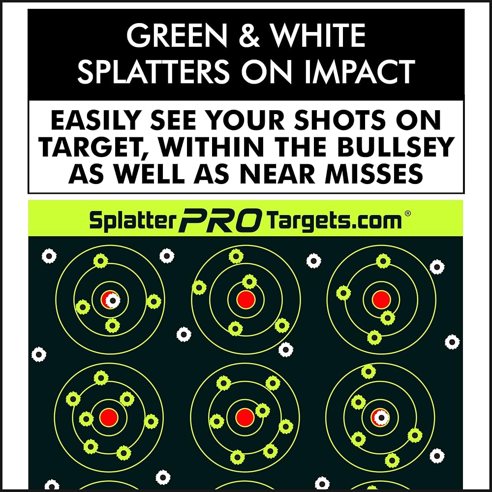 • · Our HIGH VISIBILITY splatter targets make it EASY to see your shots at a distance, no more wasting time walking downrange to SEE YOUR SHOTS