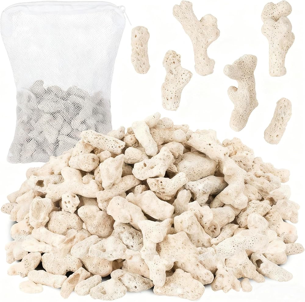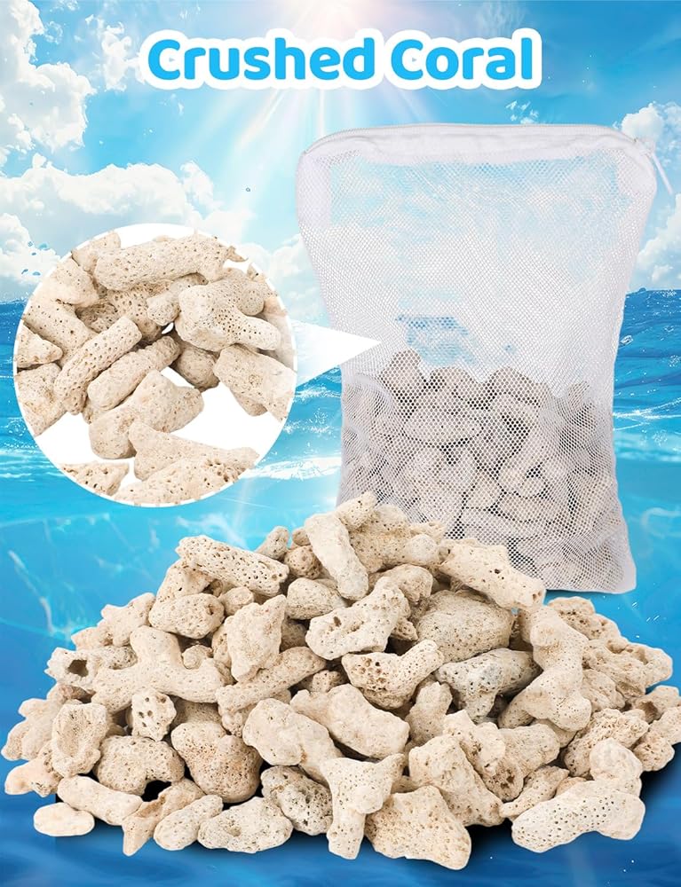 1.2 رطل/550 جرام مرجاني مطحون لأحواض المياه العذبة، حجر مرجاني طبيعي لوسائط تصفية حوض السمك مع حقيبة شبكية لأحواض السمك مادة ترشيح حيوي لتثبيت المياه ورفع درجة الحموضة