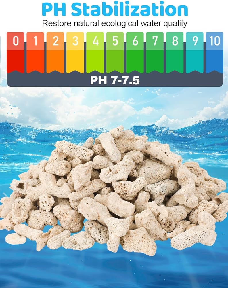 Made from selected natural coral materials, this aquarium filter media helps improve water quality by decomposing impurities and creating a healthy living environment for fish