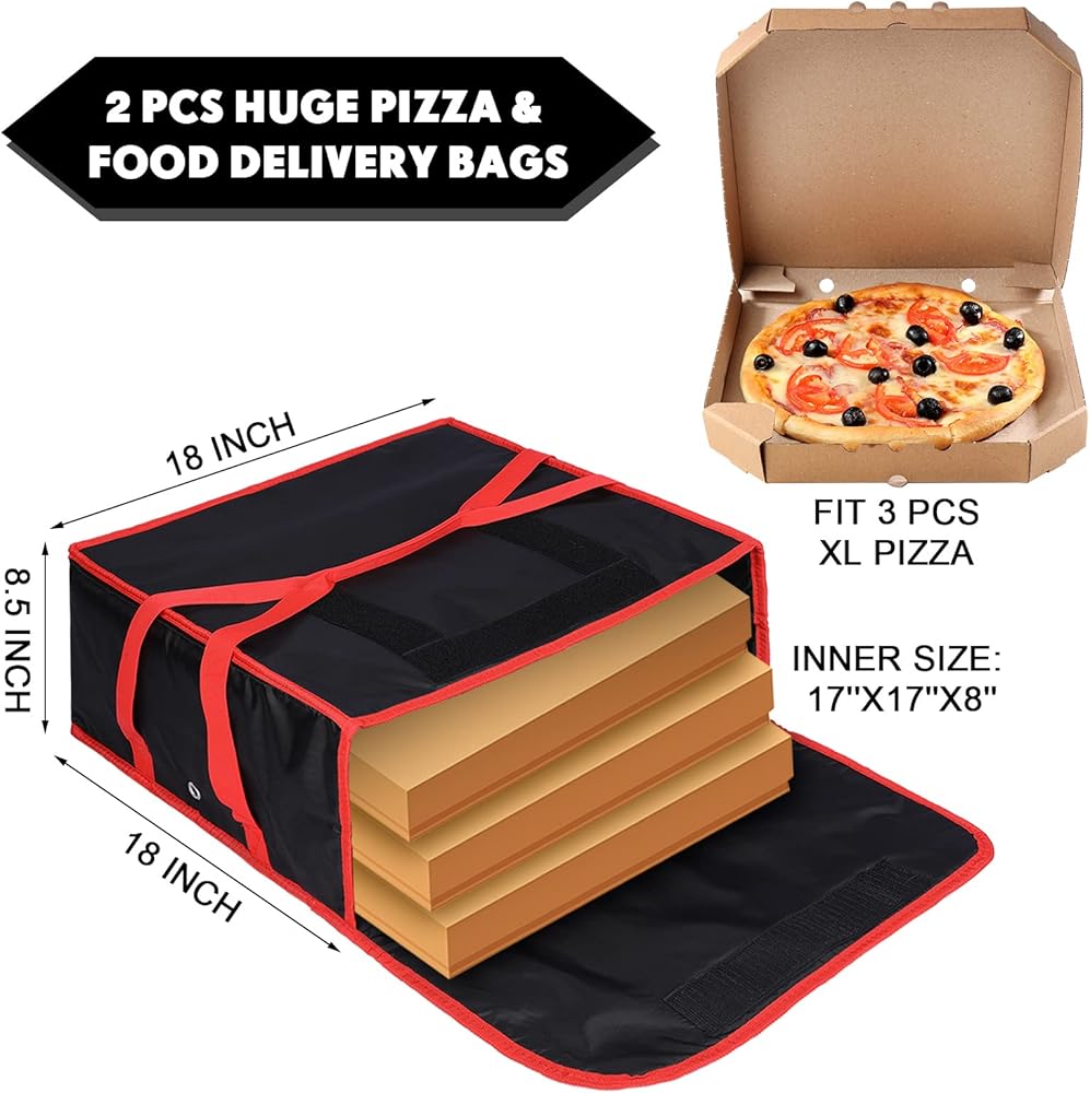 2 قطعة كبيرة معزولة حقيبة توصيل البيتزا 45.72 سم × 45.72 سم × 8.5 سم، حقيبة توصيل الطعام الثقيلة للبيتزا، الآيس كريم والكعك ناقلات بيتزا الساخنة لنقل الطعام مطعم