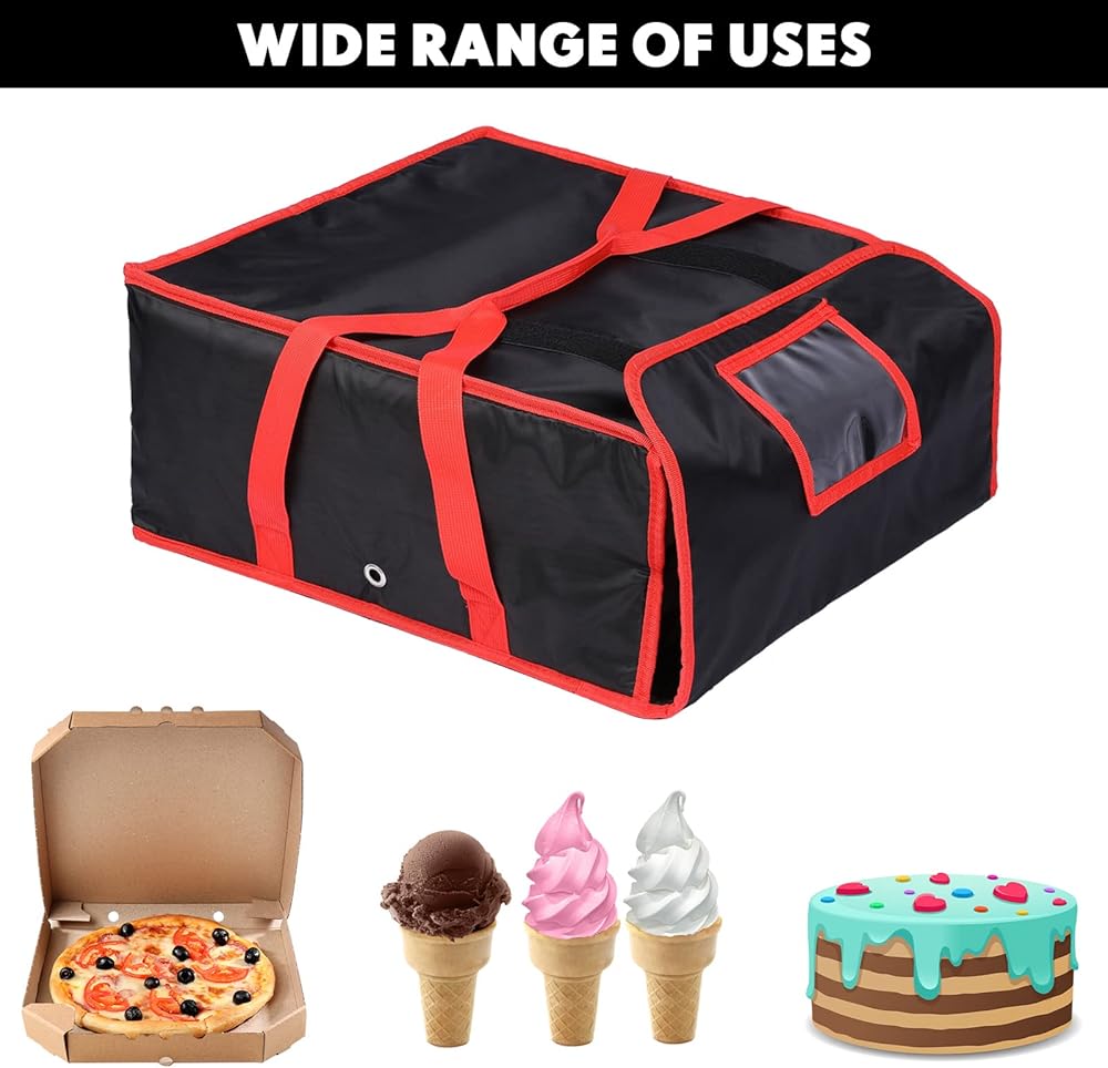 • استخدامات متنوعة: حقيبة توصيل الطعام المعزولة هذه مثالية لتوصيل البيتزا والنزهات في الهواء الطلق والسفر وأكثر من ذلك، ويمكنك طيها بسهولة لتخزينها عندما لا تكون قيد الاستعمال