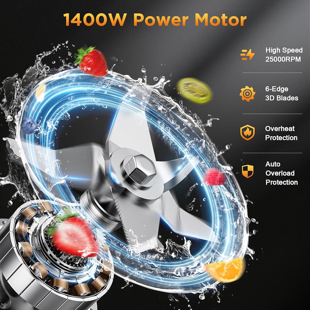 خلط عالي الأداء: يتميز بمحرك قوي يصل إلى 25000 دورة في الدقيقة وشفرات متينة من الفولاذ المقاوم للصدأ وشفرات متينة من الفولاذ المقاوم للصدأ، يقوم خلاط عصير H-Duka بمعالجة الثلج والفواكه المجمدة والمكونات الصلبة بكفاءة إلى قوام ناعم وكريمي - مما يساعد على الحفاظ على العناصر الغذائية مع التحضير السريع.