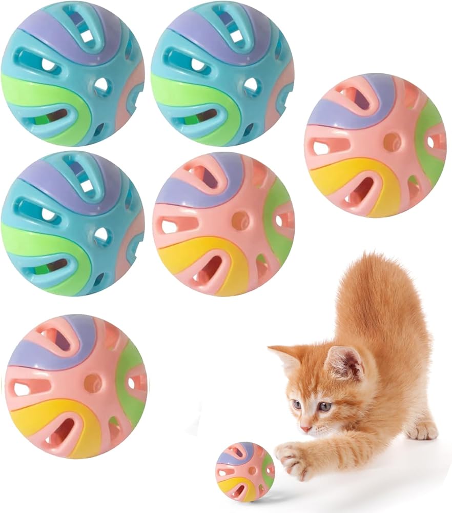 Encourages active play: Each ball contains an internal bell, Interactive Playing Chewing Toys for Indoor Cats and Kittens,These multi-colored balls are certain to pique your cat's interest, and are perfect for swatting, pouncing, and playing the day away.