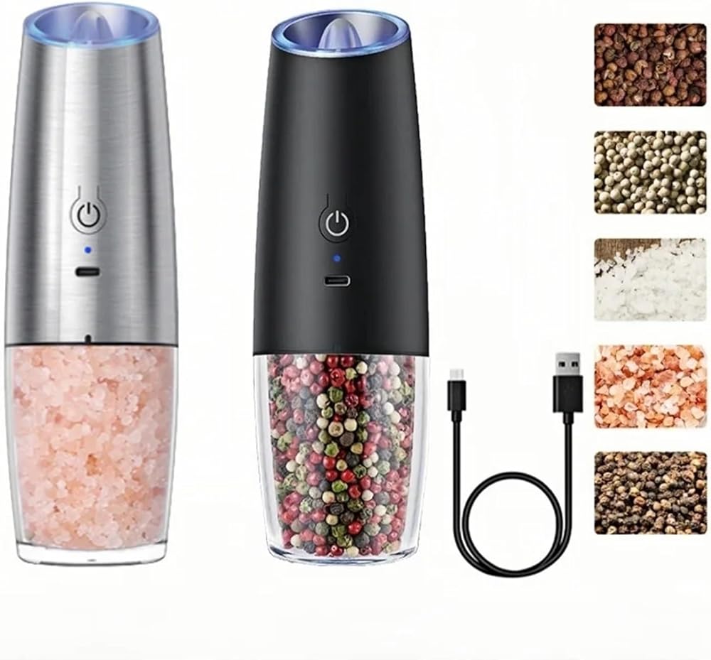 Electric Salt and Pepper Grinder USB Rechargeable Adjustable Coarseness Large Capacity Spices Grinders Kitchen Cooking Tool