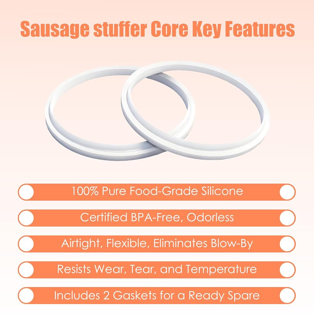 · 【 عبوتان قيمة - احصل دائمًا على قطعة احتياطية 】 لا تدع الحشية البالية توقف يوم صنع النقانق. تشتمل هذه المجموعة على حشوتين، مما يوفر قيمة مذهلة. استخدم واحدة على الفور لإصلاحها واحتفظ بالأخرى كقطع غيار هامة لحشو النقانق، لذلك تكون دائمًا مستعدًا للصيانة المستقبلية دون أي توقف عن العمل