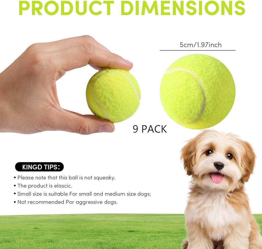 9 Pack 2 Inch Mini Tennis Balls for Small Dogs, Interactive Dog Toys for Fetch Training & Exercise, Fits 2-Inch Dog Ball Launchers