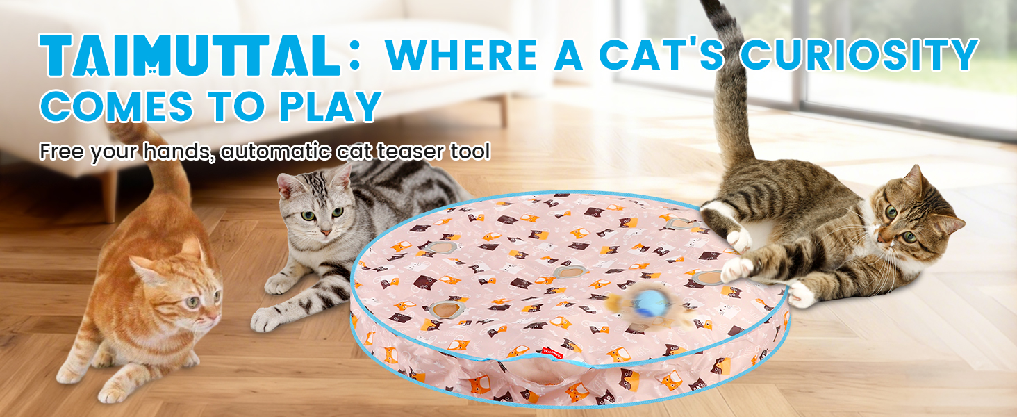 ألعاب تفاعلية للقطط، لعبة سجادة صيد أوتوماتيكية للقطط، كرة تختبئ وتتحرك بسرعة تعمل بالحركة، لتمرين الإثراء الداخلي، تصدر أصوات الحيوانات، سجادة 28 بوصة، 3 ذيول